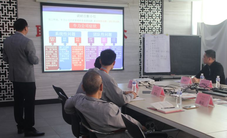 在會議上公司管理顧問雷志文講述公司現有存在的九大問題,總結公司出現的兩大問題系統性問題和團隊性問題。系統性問題從三個方面解決1.標準化建設,2.體系制約,3.體系責任。團隊性問題從三個方面解決1.團隊價值,2.團隊建設,3.企業文化。公司管理顧問雷志文提出了本次管理變革實施的重點是流程管理體系,績效管理體系,薪酬管理體系,核心團隊打造,企業文件打造,稽核管理體系,作業標準建立,改造牛力管理團隊。