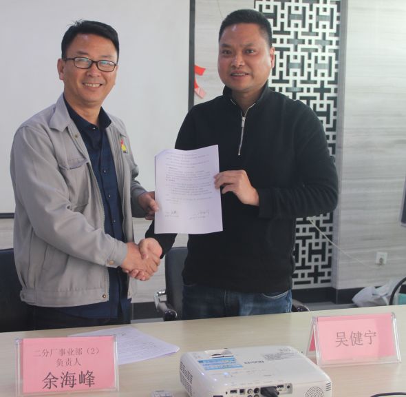 總經理吳健寧與事業二部負責人楊遠簽暑協議