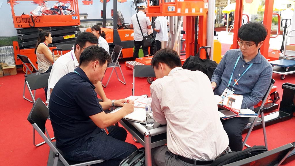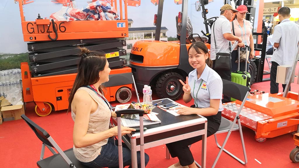 作為廣交會的資深參展商,牛力機械已連續十多年參展廣交會,每年都會給全球客商帶來各類產品的展示,有手動搬運車、升高車、電動叉車、高空作業平臺、取料機、柴油叉車等產品。